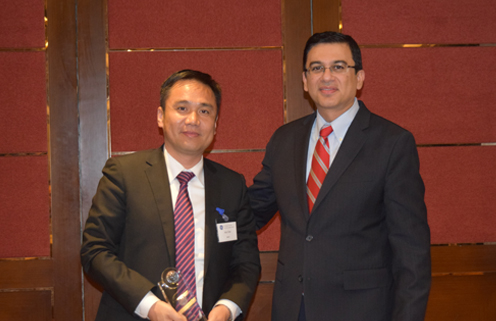 (溫州宏豐董事長兼總裁(左一)領(lǐng)取“優(yōu)秀供應(yīng)商”獎)