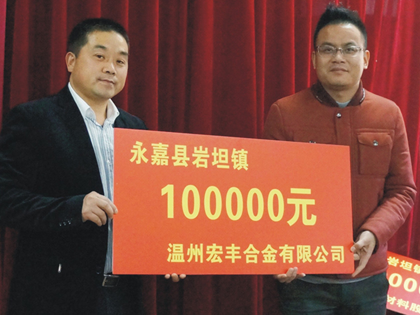 2月5日,溫州宏豐捐助十萬元為永嘉縣巖坦鎮(zhèn)扶貧幫困,傳遞了扶貧濟困、無私奉獻的宏豐正能量。